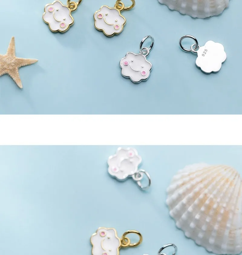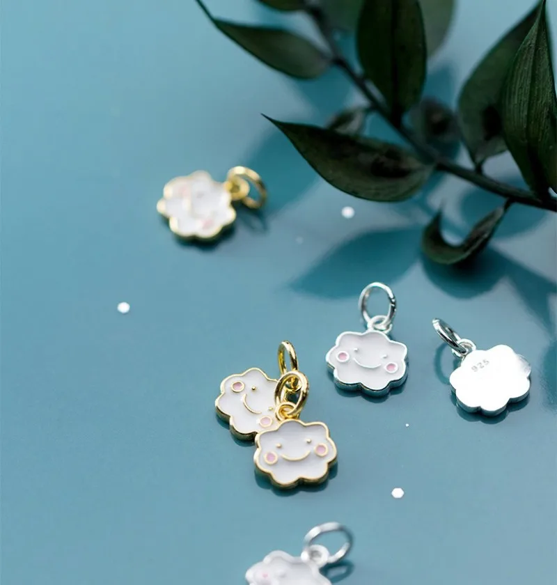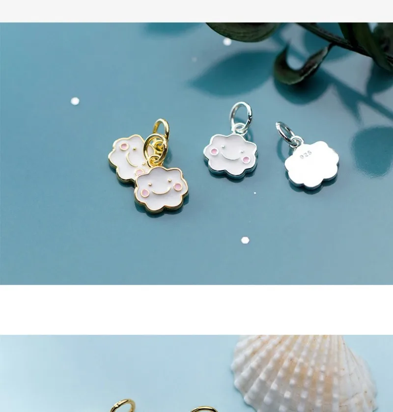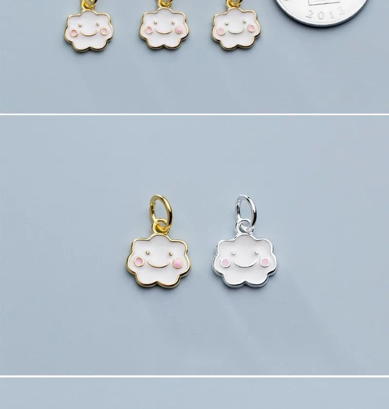 TrustDavis Real 925 Sterling Silver Pendant Handmade DIY Necklace Cloud Smiley Face Accessories Fine S925 Jewelry Gift DZ1807