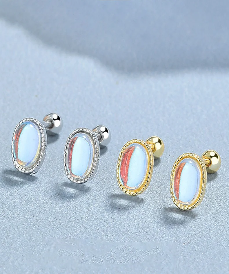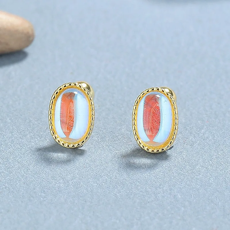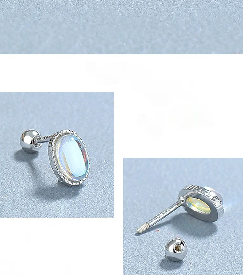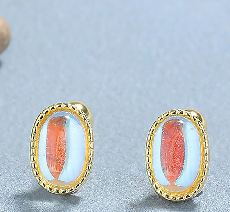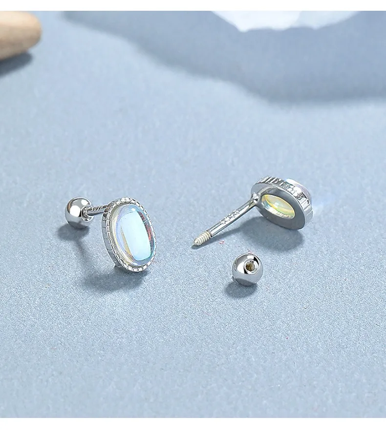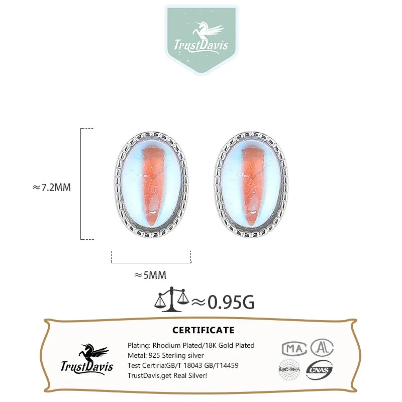 Trustdavis Real 925 Sterling Silver Personality Elliptical Moonlight Stone Earrings Stud Earrings For Women Fine Jewelry DS4066
