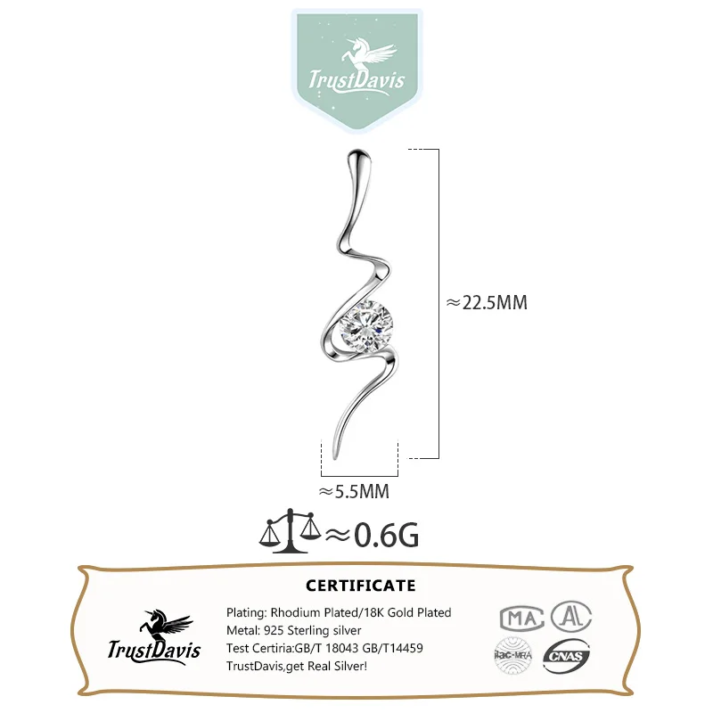 TrustDavis Real 925 Sterling Silver Personality Fashion Lightning CZ Charm Pendant Handmade DIY Accessories Fine Jewelry HY199