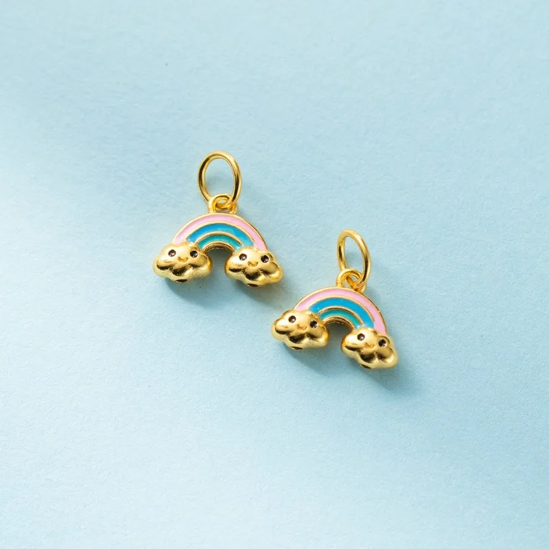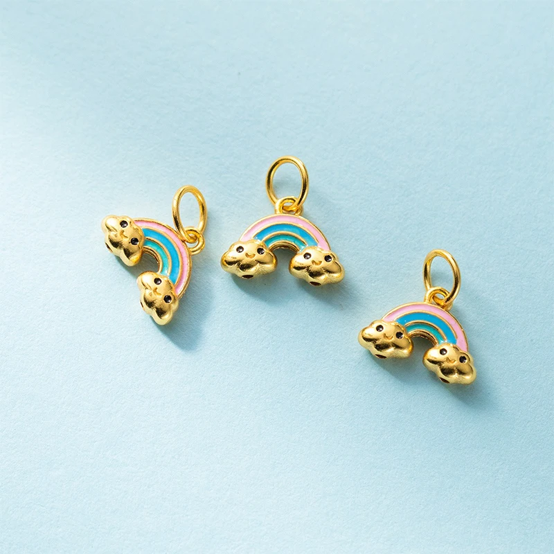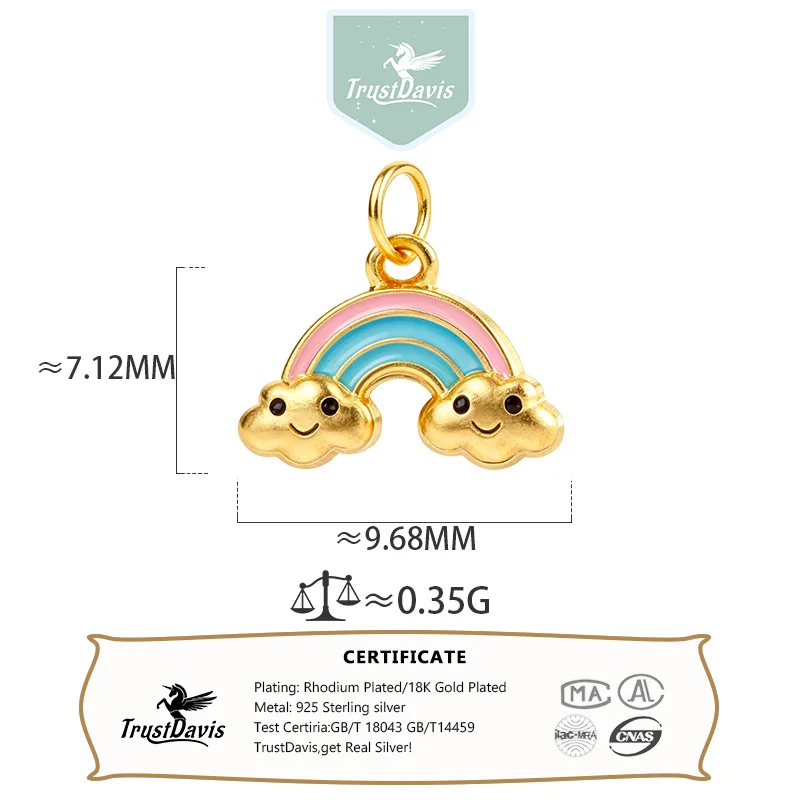 TrustDavis Real 925 Sterling Silver Personality Fashion Sweet Cute Rainbow Charm Pendant Handmade DIY Accessories Jewelry DZ1805