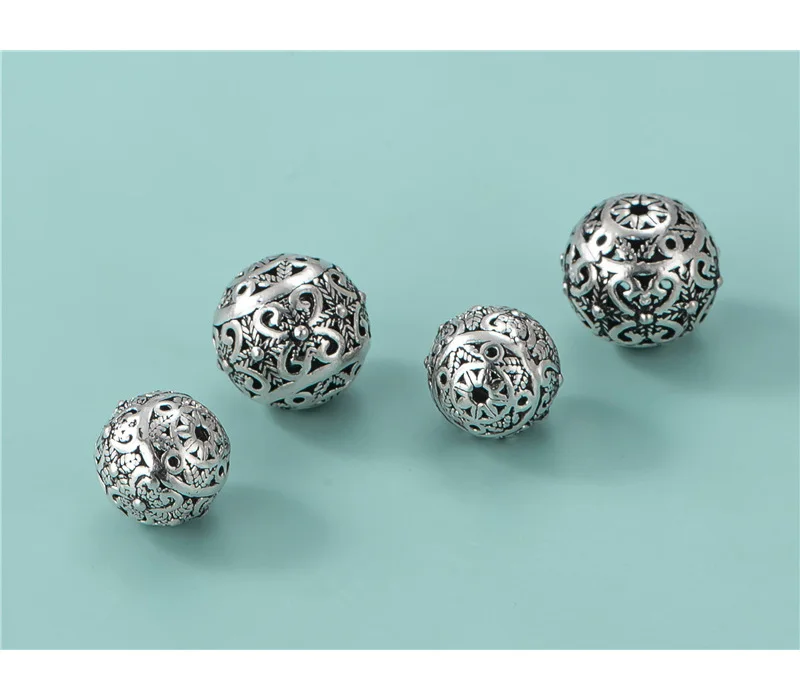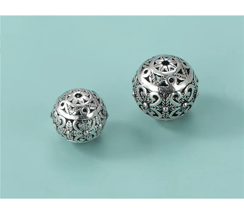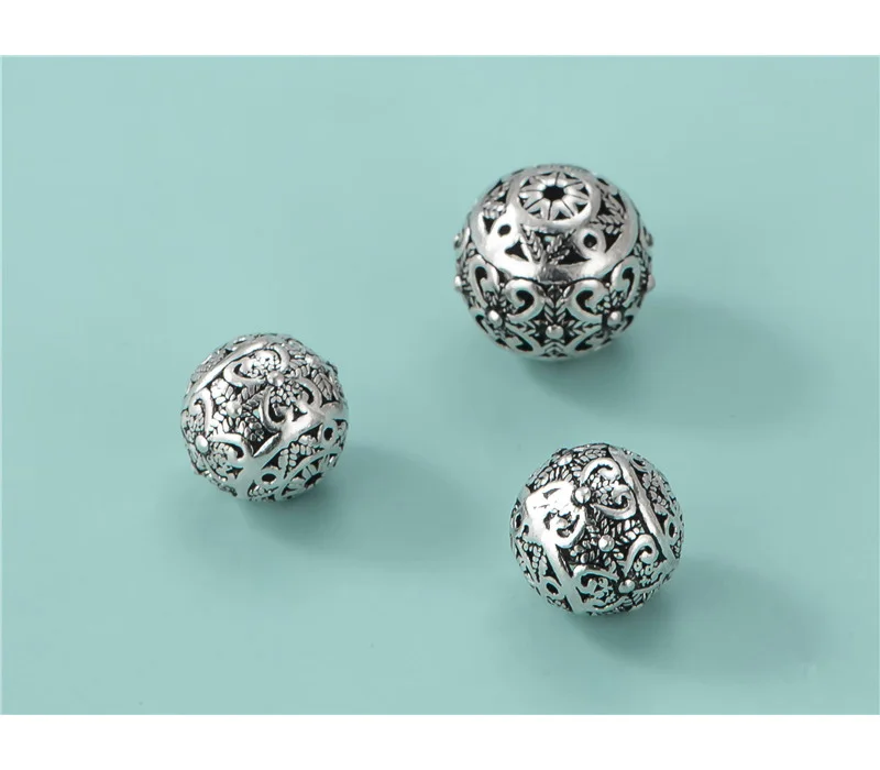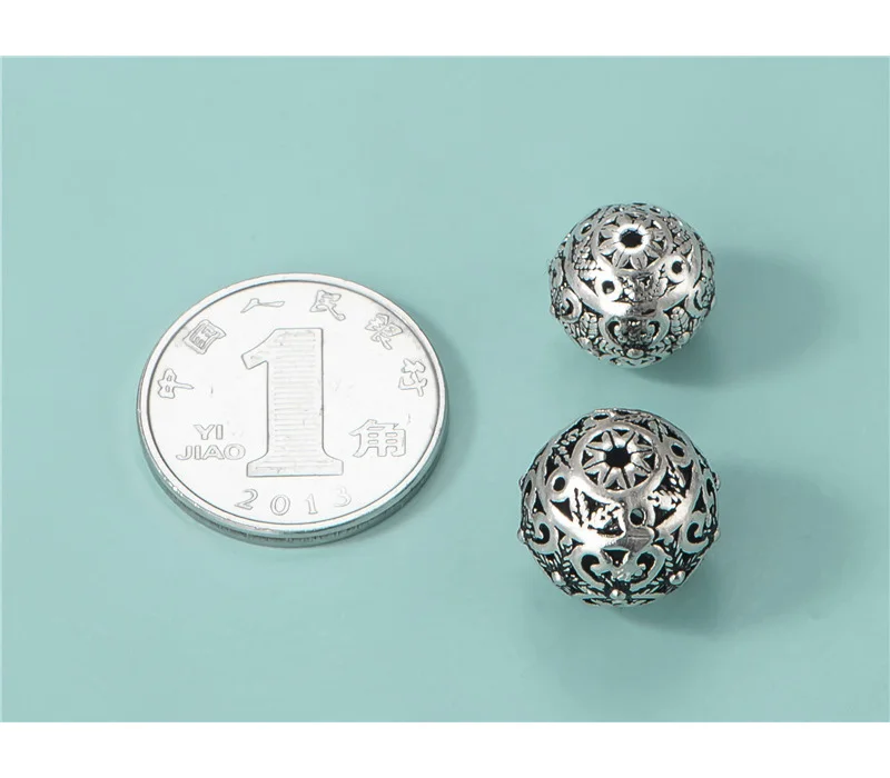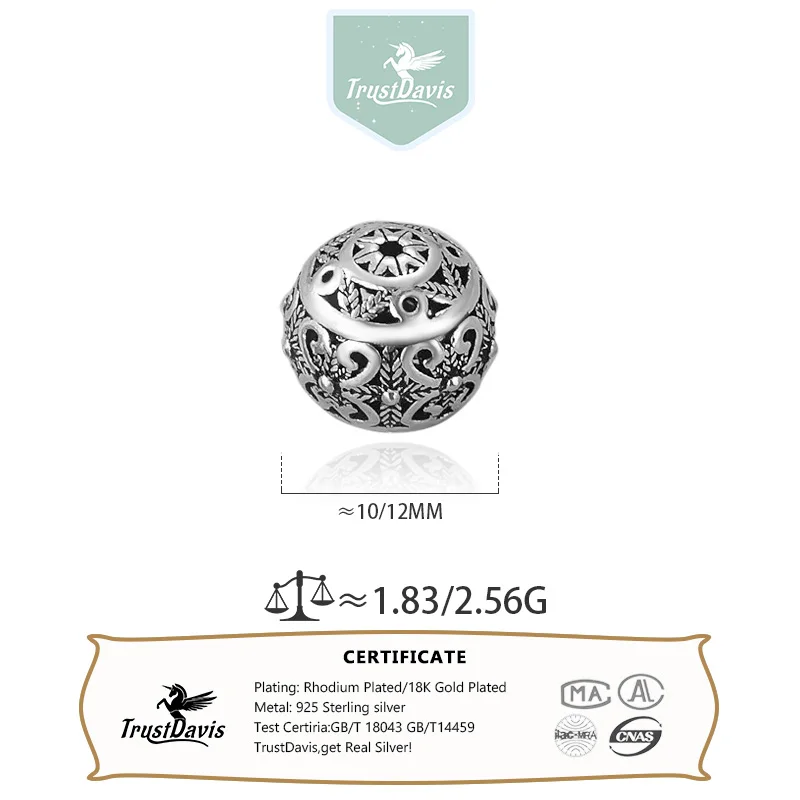 TrustDavis Real 925 Sterling Silver Retro Round Pattern Charm Interval Bead DIY Fit Necklace Bracelet Accessories Jewelry DZ693