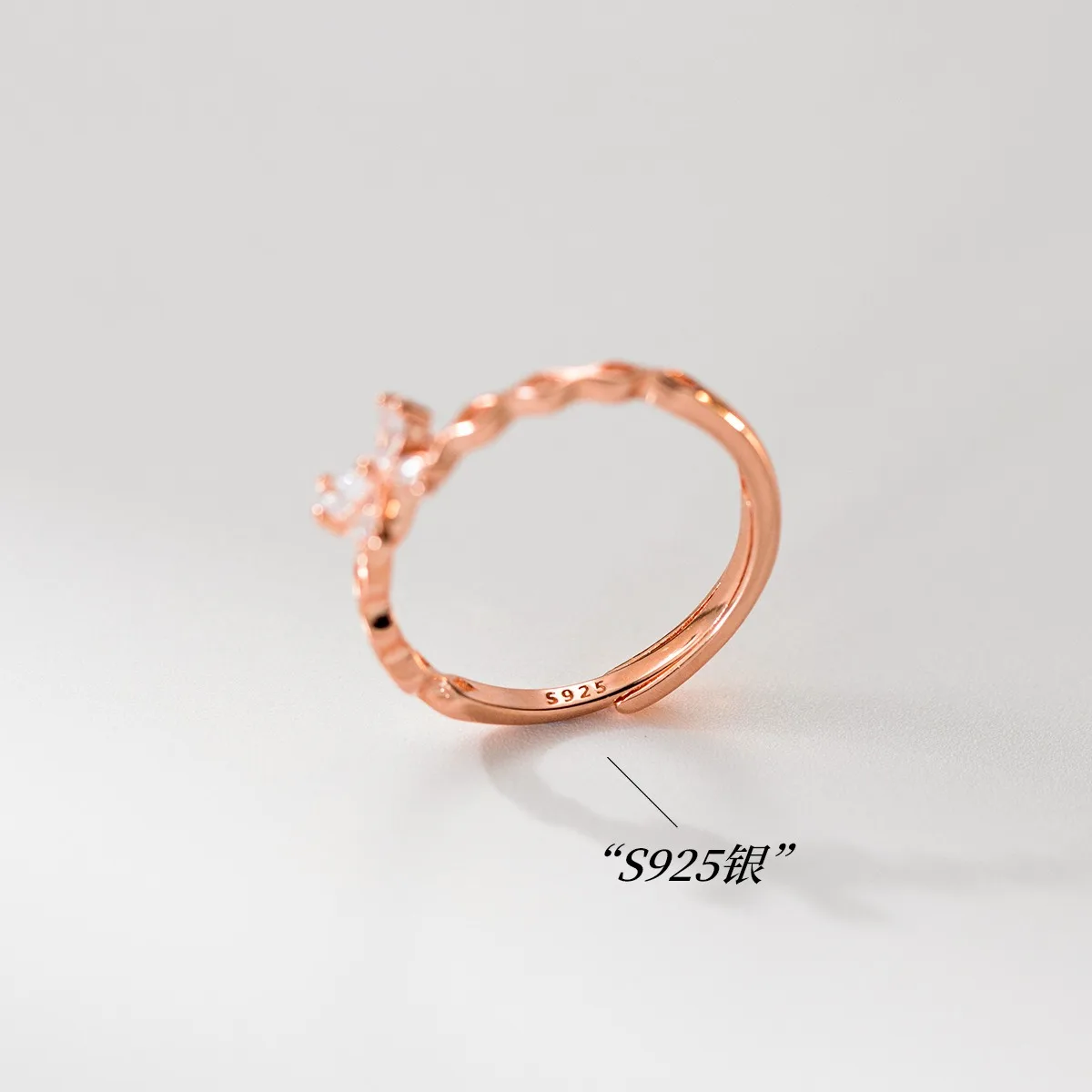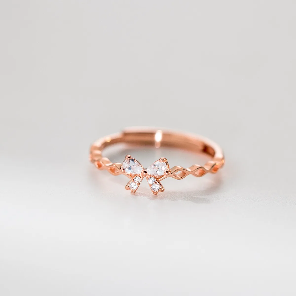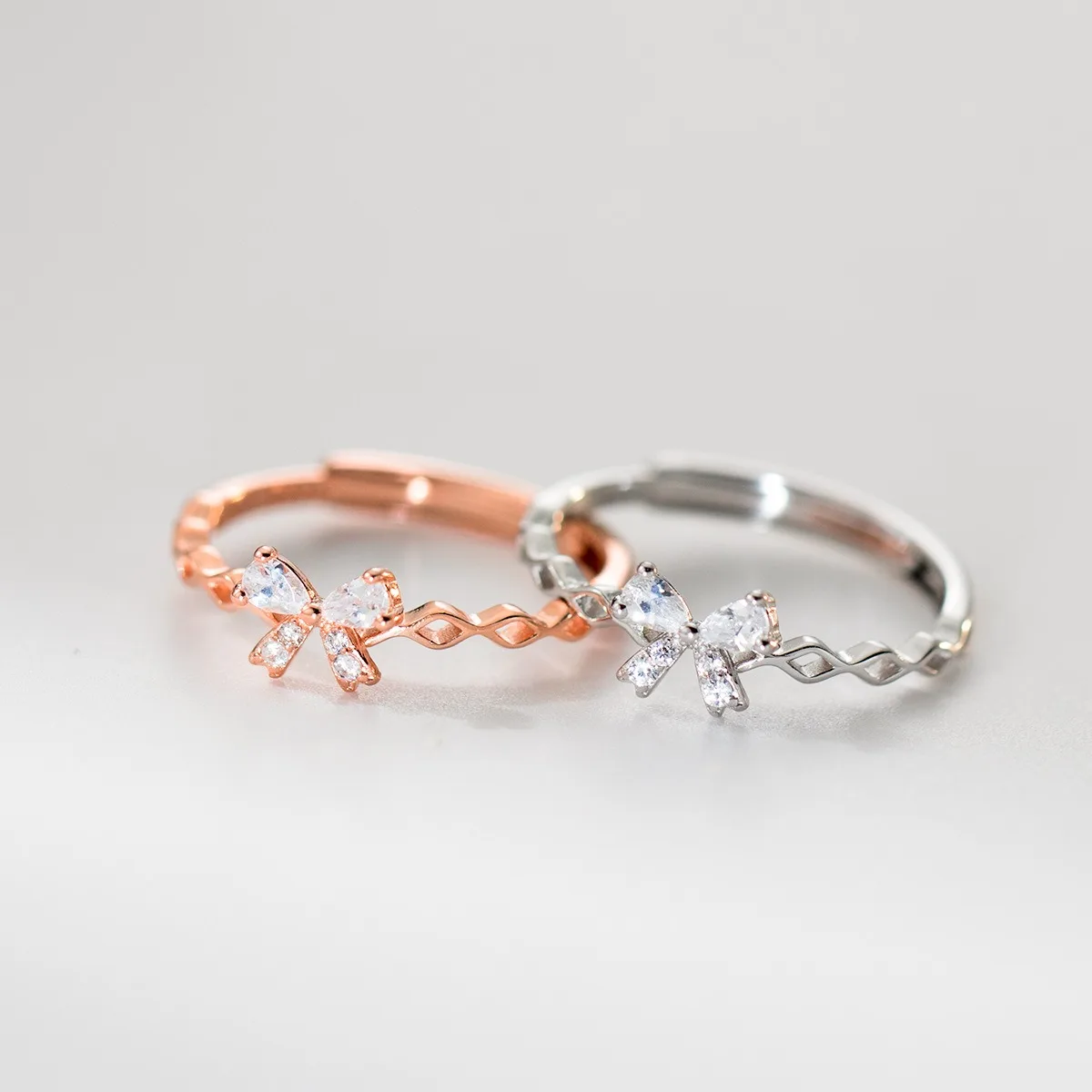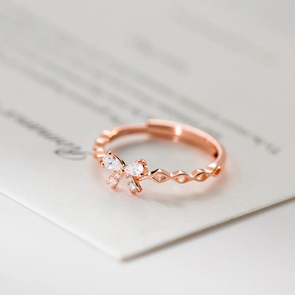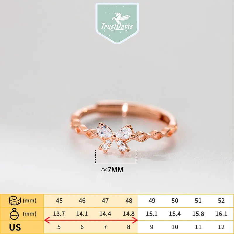TrustDavis Real 925 Sterling Silver Ring Fashion Charm Bow Zirconi Ring for Women Adjustable Ring Fine Jewelry for Her DS4165