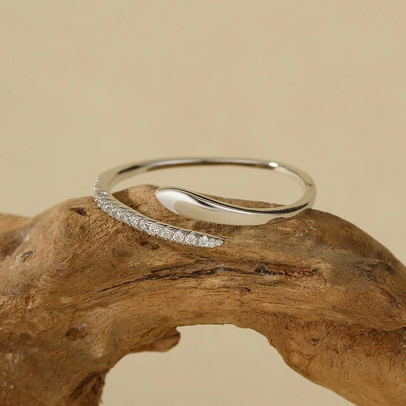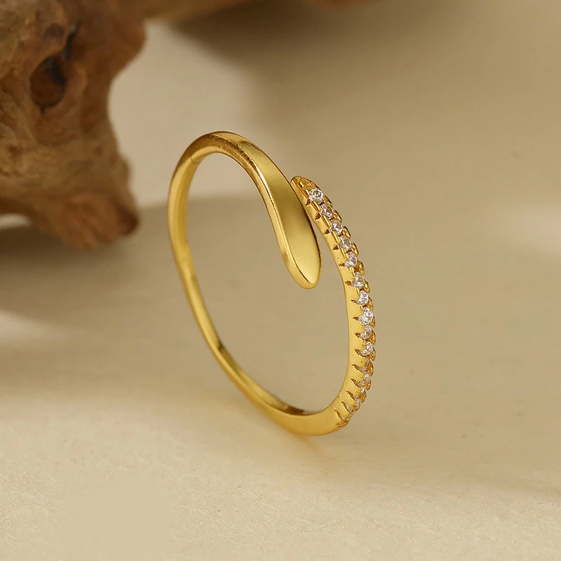 TrustDavis Real 925 Sterling Silver Ring Fashion Simple Snake-shaped Zircon Adjustable Ring for Women Girl Jewelry Gift DS4656