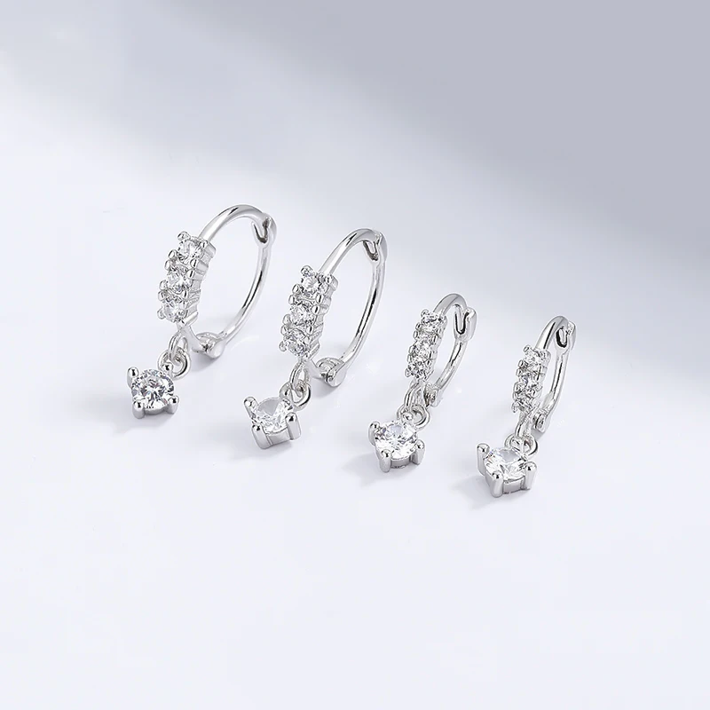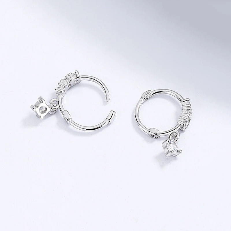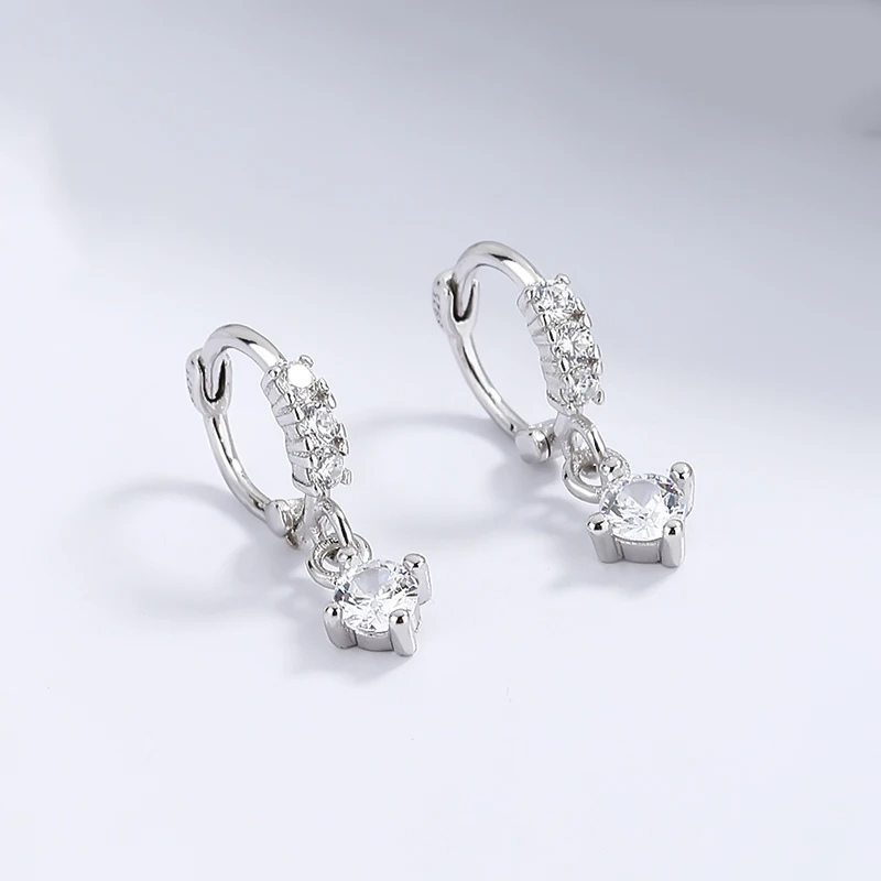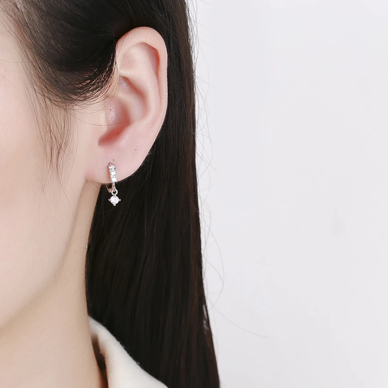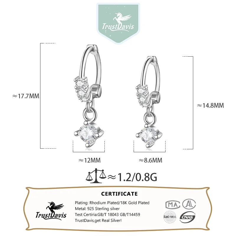 TrustDavis Real 925 Sterling Silver Simple square zircon Hoop Earrings For Daughter Girls Birthday Gift Fine Jewelry DS4128