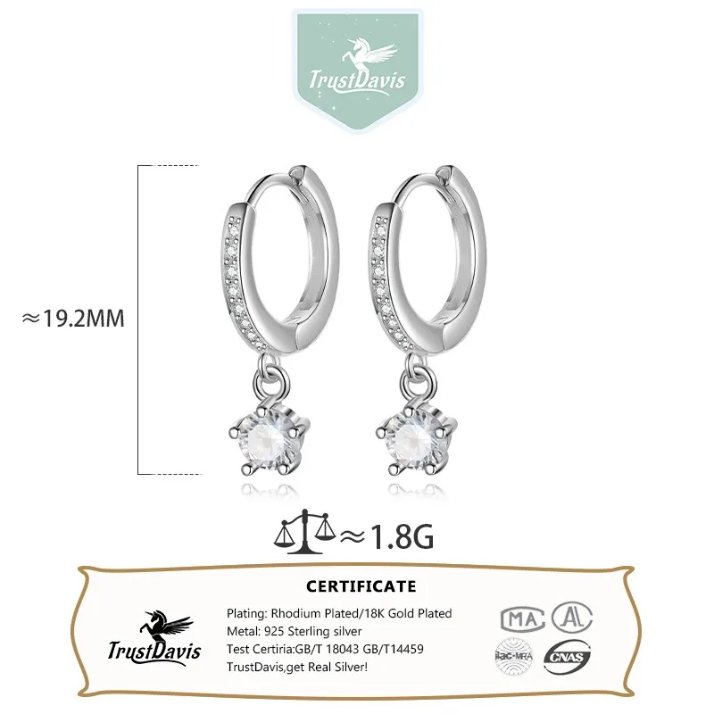 Trustdavis Real 925 Sterling Silver Simplicity Zircon Hoop Earrings Women Girls Birthday Party Gift Jewelry DS4133