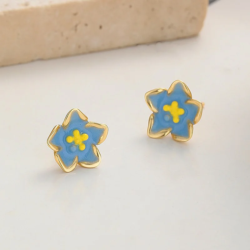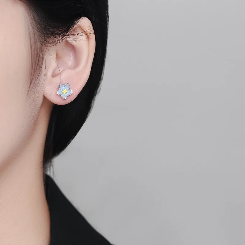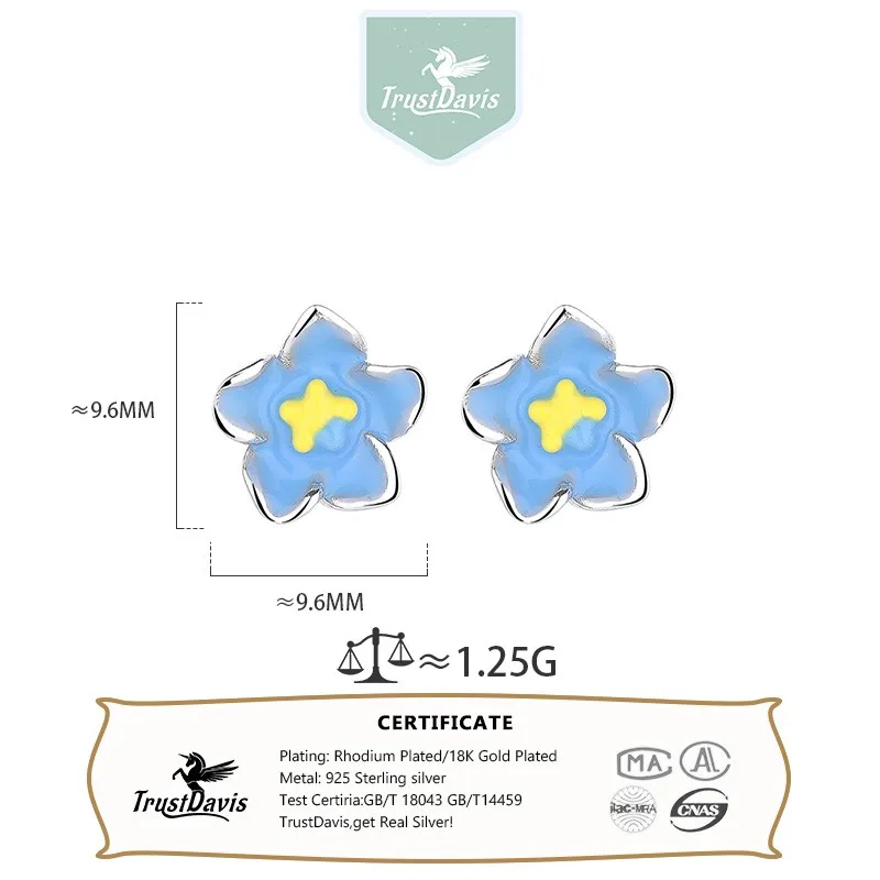 TrustDavis Real 925 Sterling Silver Small Fresh Flowers Screw Stud Earrings for Women Young Daughter Birthday Party Gift DS4072
