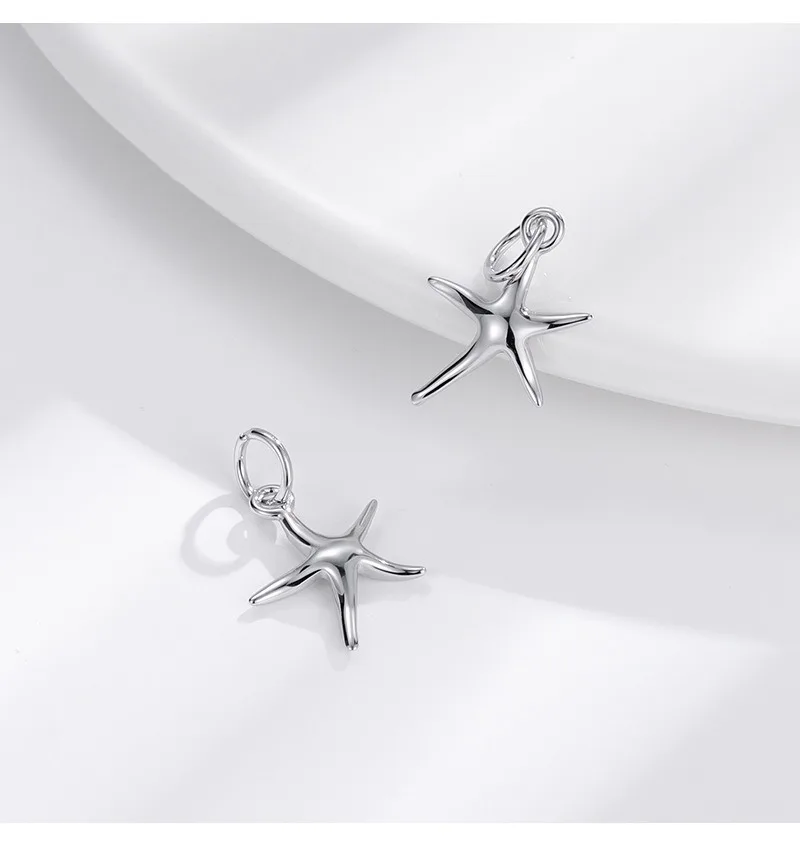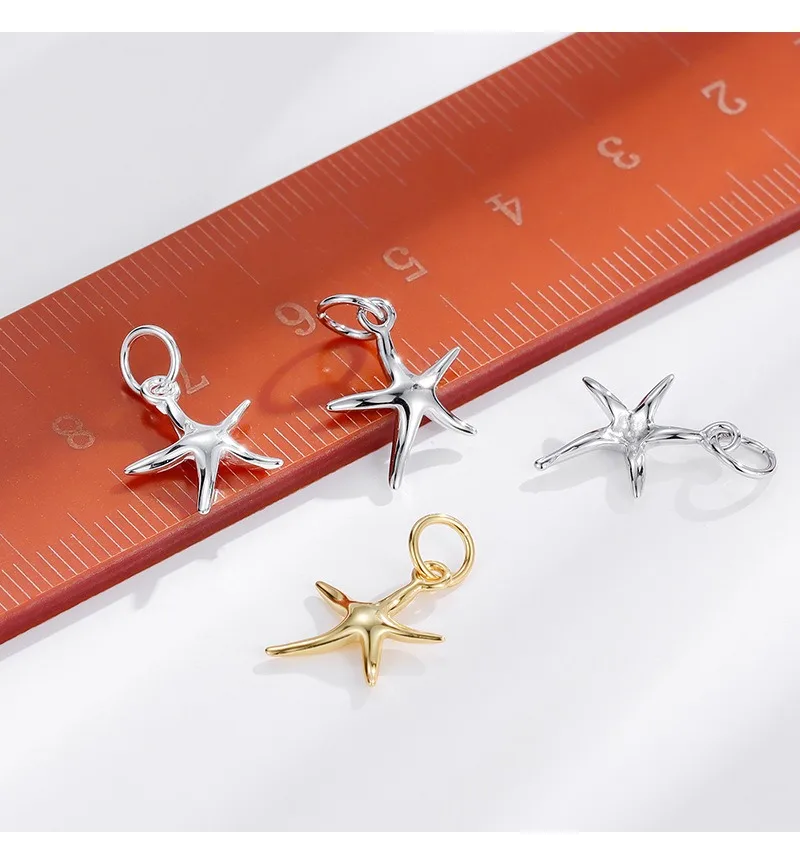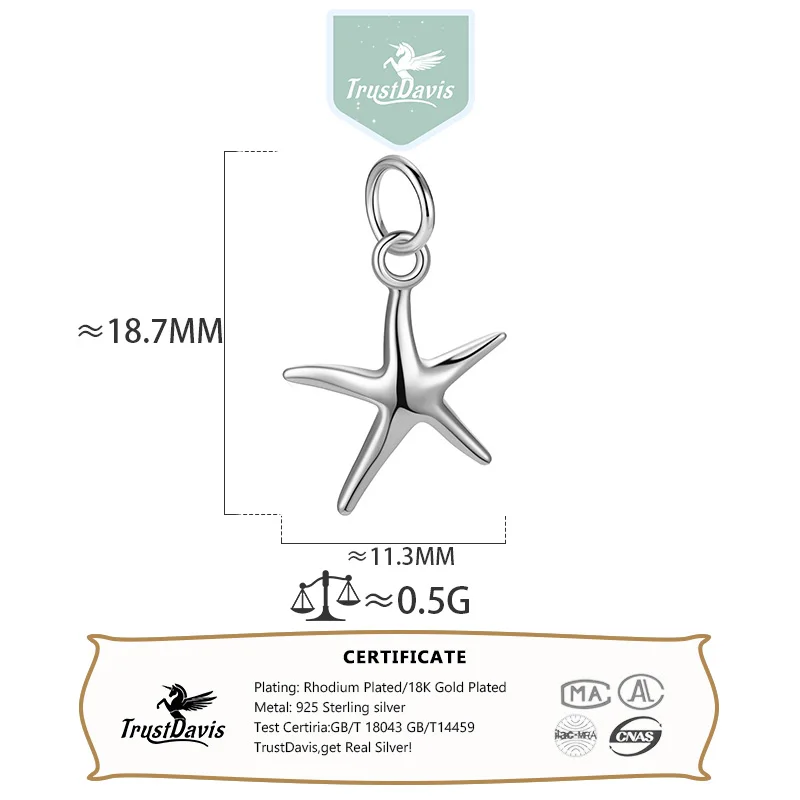 TrustDavis Real 925 Sterling Silver Smooth Bright Starfish Charm Pendant Handmade DIY Accessories Fine Jewelry Wholesale DZ1803