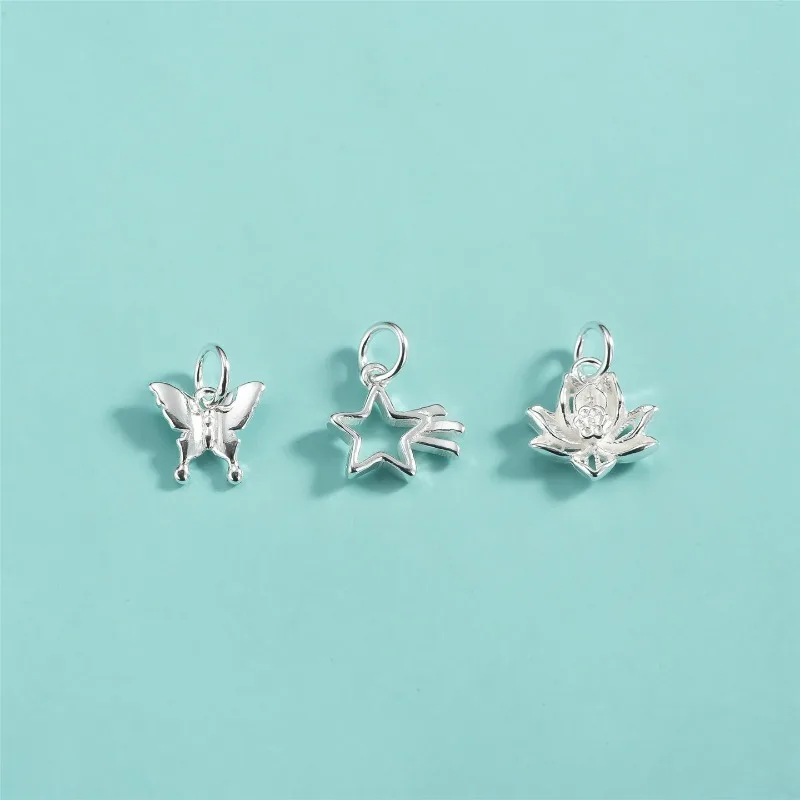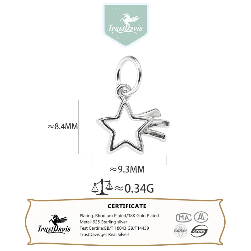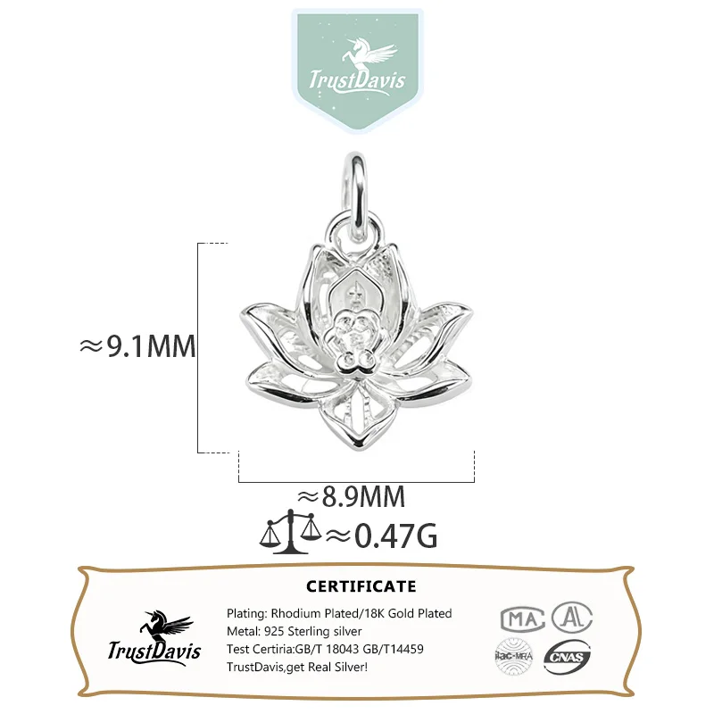 TrustDavis Real 925 Sterling Silver Star Lotus Charm Pendant for Making Necklace Handmade DIY Accessories Fine Jewelry DZ1821
