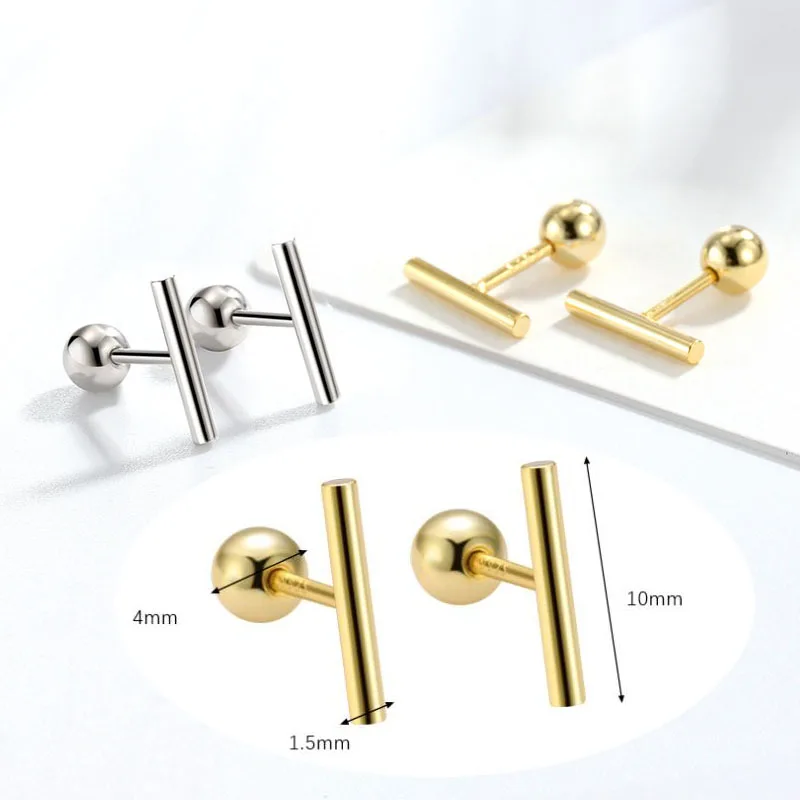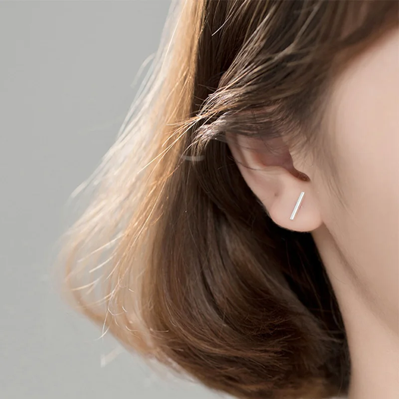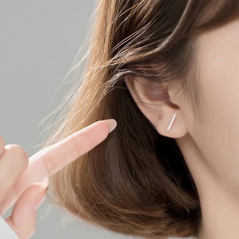 Trustdavis Real 925 Sterling Silver Stick Screw Stud Earrings For Women Children Baby Girls Kids Mini Minimalist Jewelry DA45