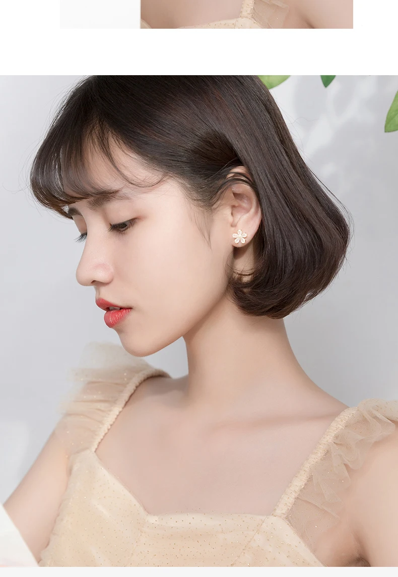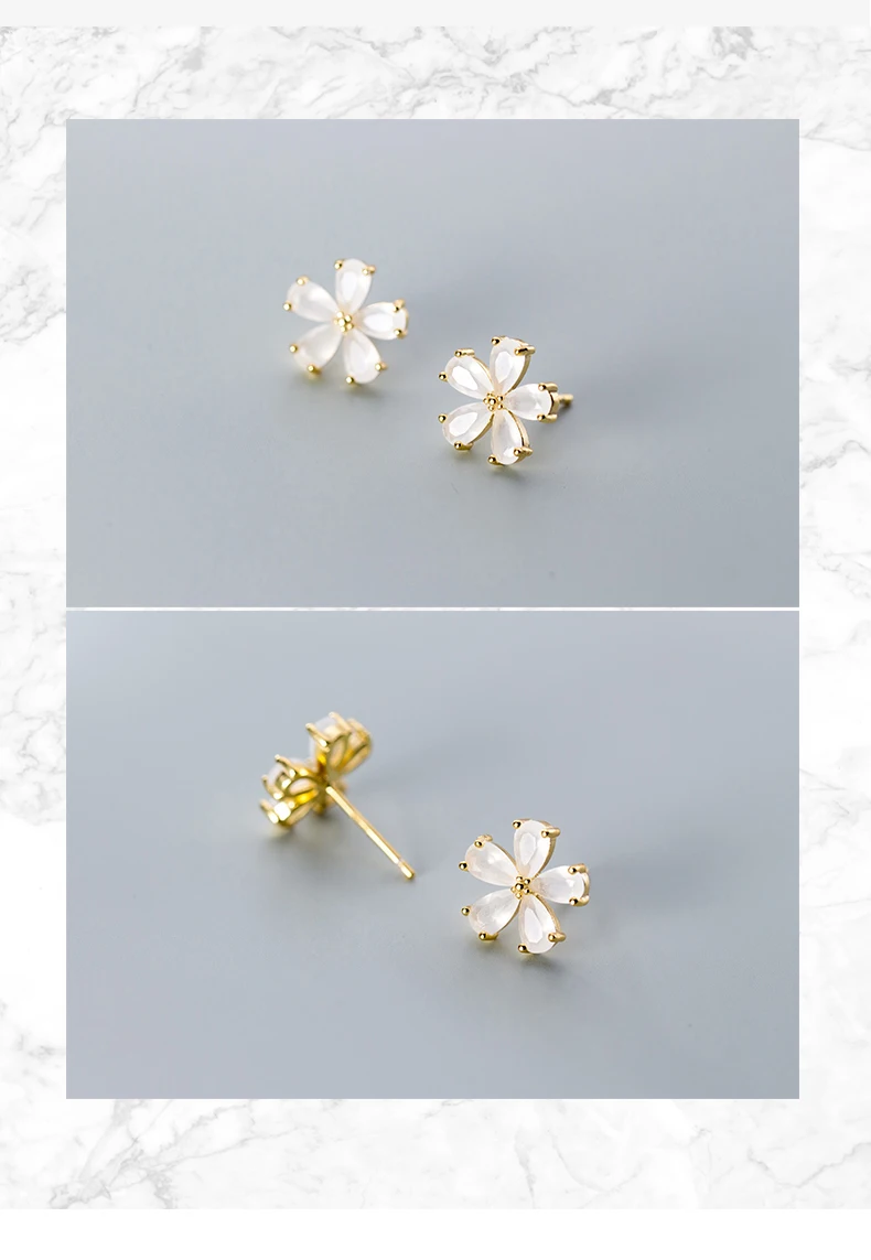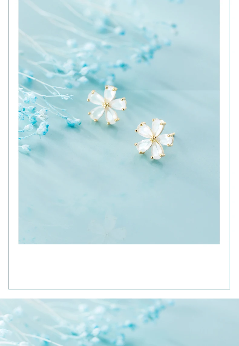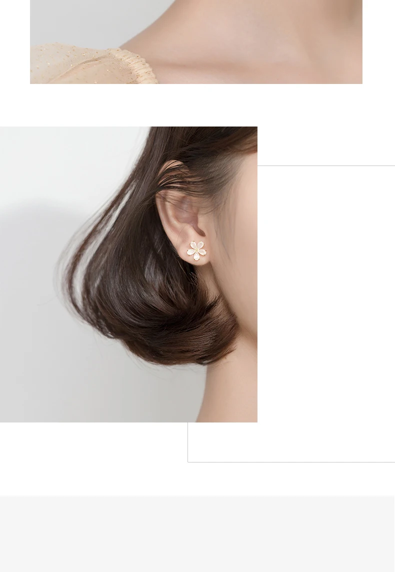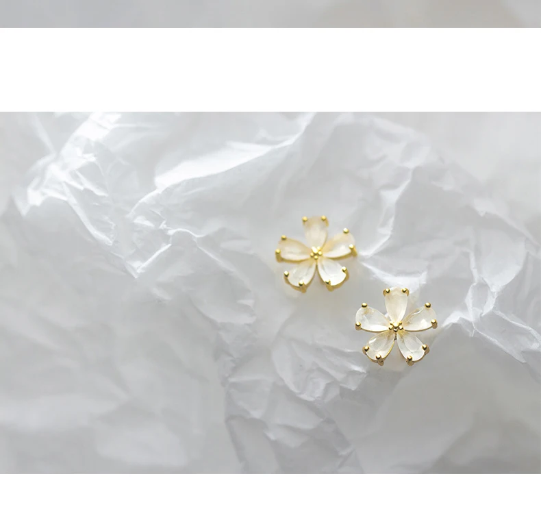 TrustDavis Real 925 Sterling Silver Stud Earrings For Women Gold Pretty Flower Valentine's Day Fine 925 Earring Jewelry DS2573