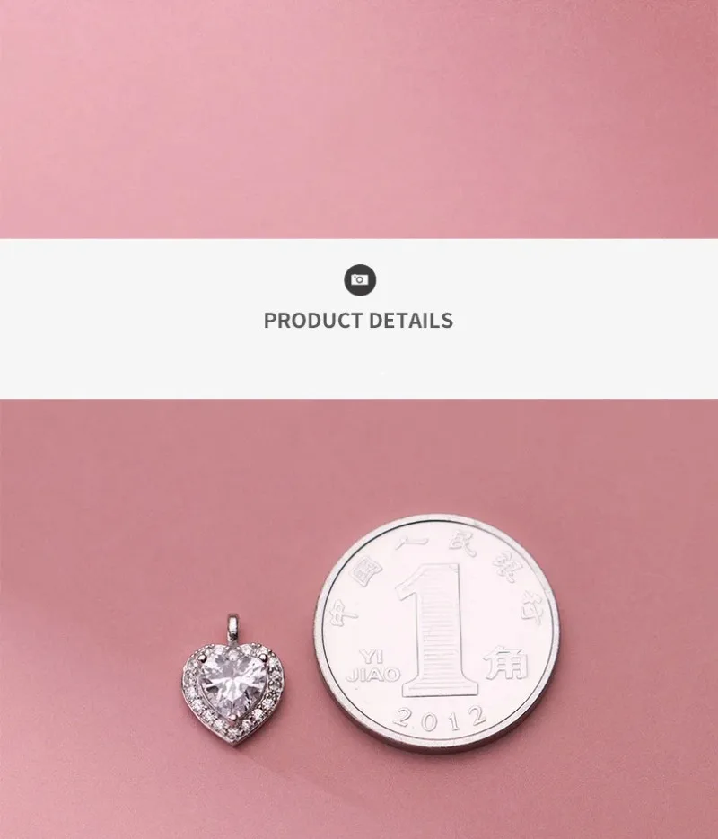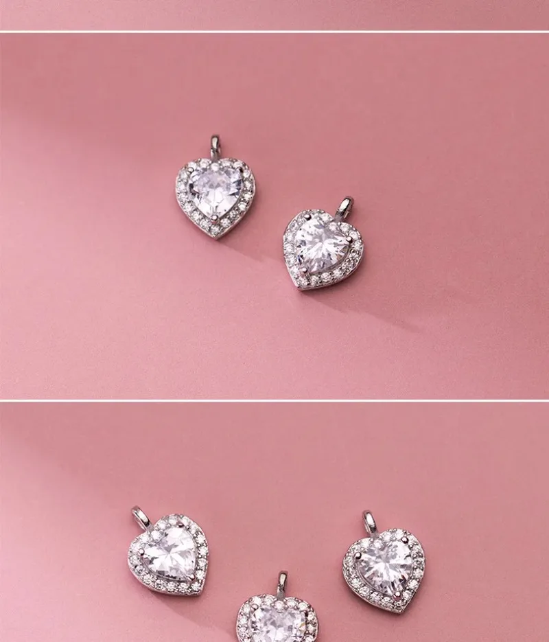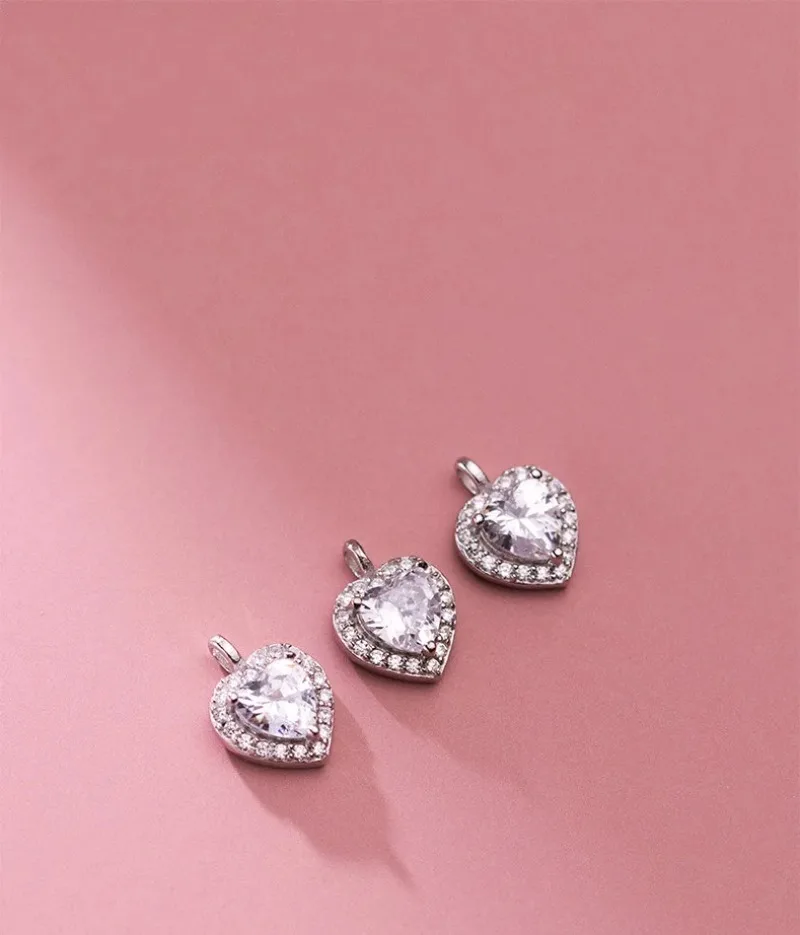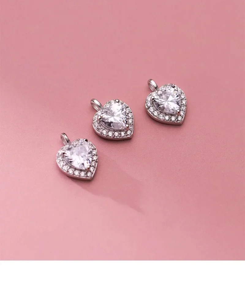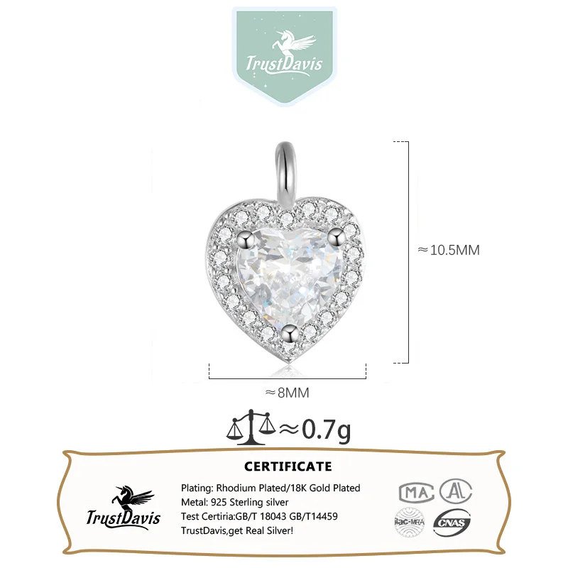 TrustDavis Real 925 Sterling Silver Sweet Romantic Heart Shiny CZ Pendant Handmade DIY Necklace Accessories Fine Jewelry HY846