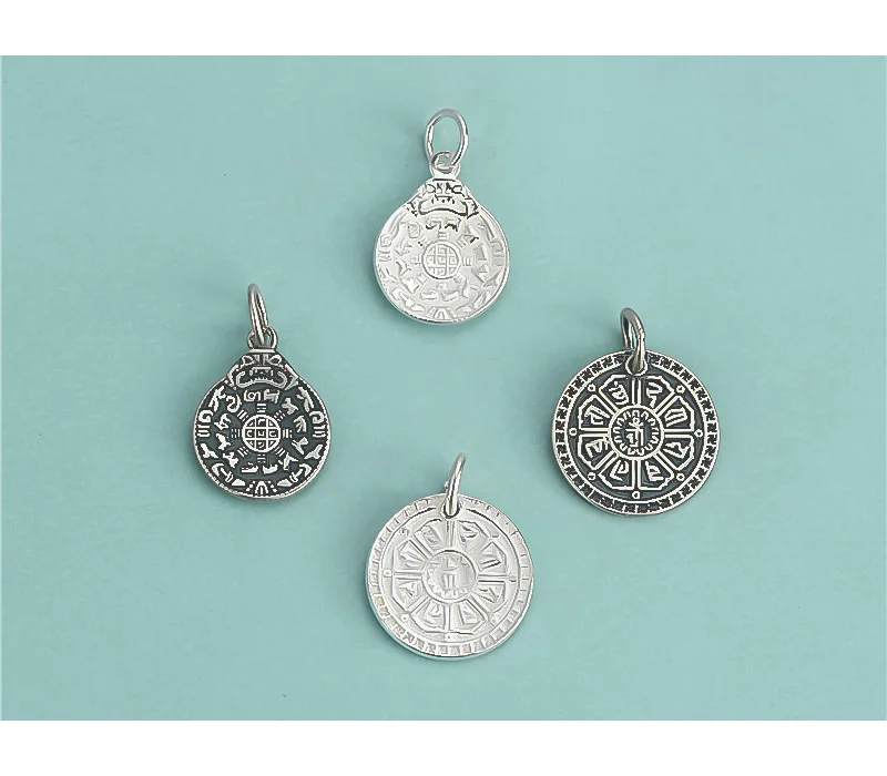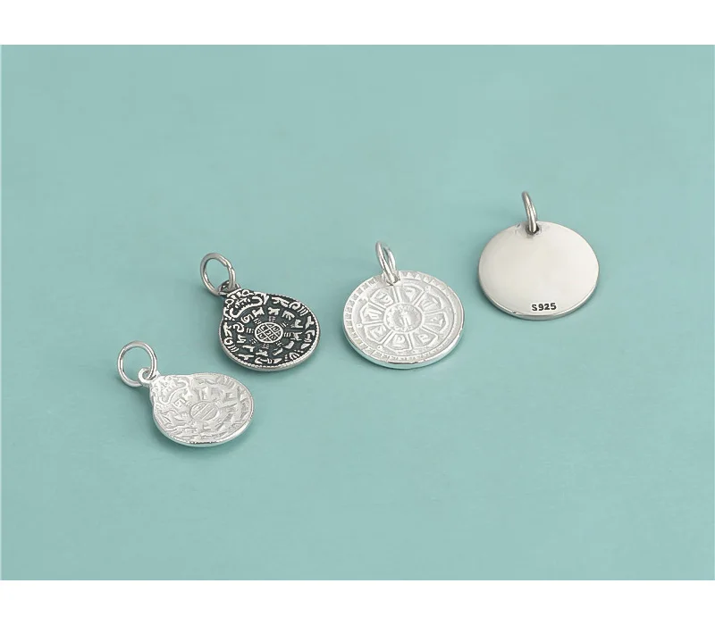 TrustDavis Real 925 Sterling Silver Sweet Round Card Pendant Handmade DIY Fit Necklace Bracelet Accessories Fine Jewelry DZ720