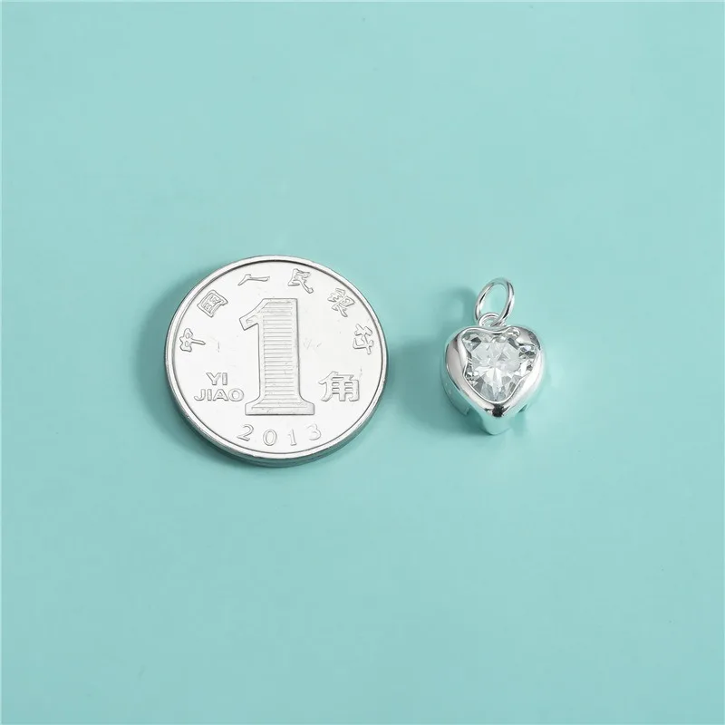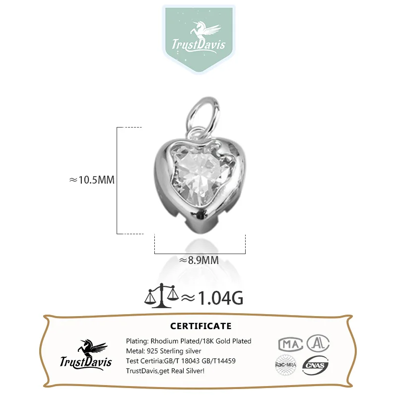 TrustDavis Real 925 Sterling Silver Sweet Zircon Heart Charm Pendant Handmade DIY Accessories Fine Jewelry Wholesale DZ1773
