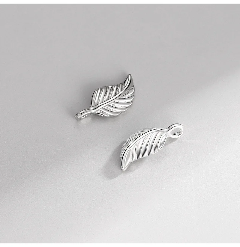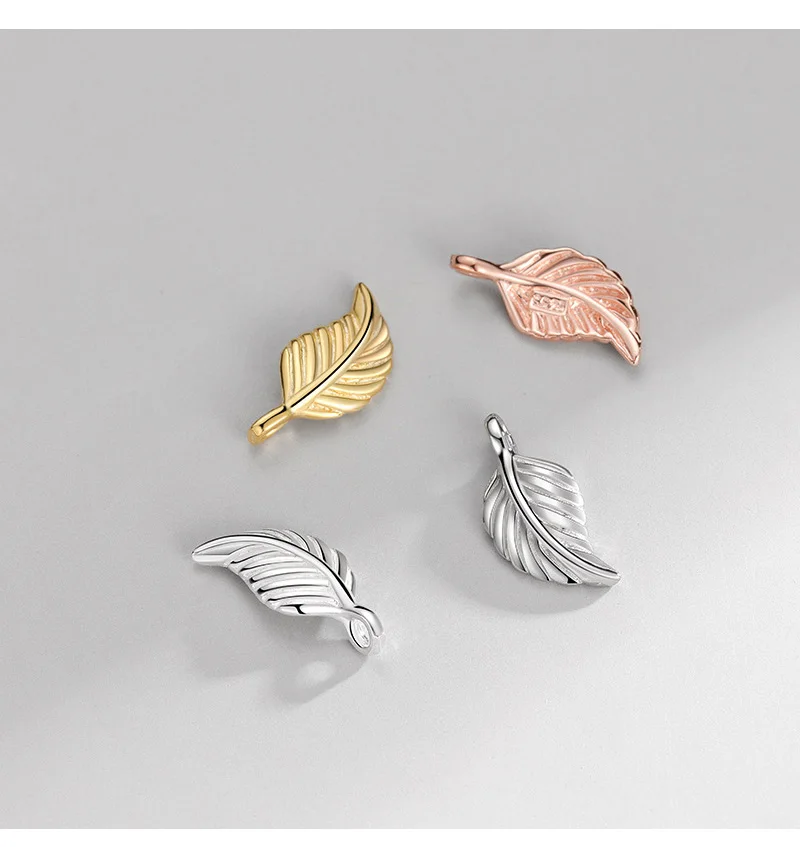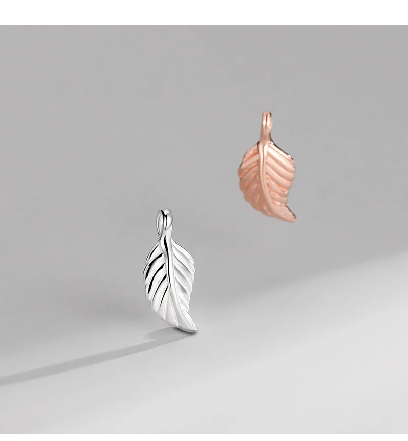 TrustDavis Real 925 Sterling Silver Vintage Leaf Feather Charm Pendant for Women Kids Handmade DIY Accessories Jewelry DH0049