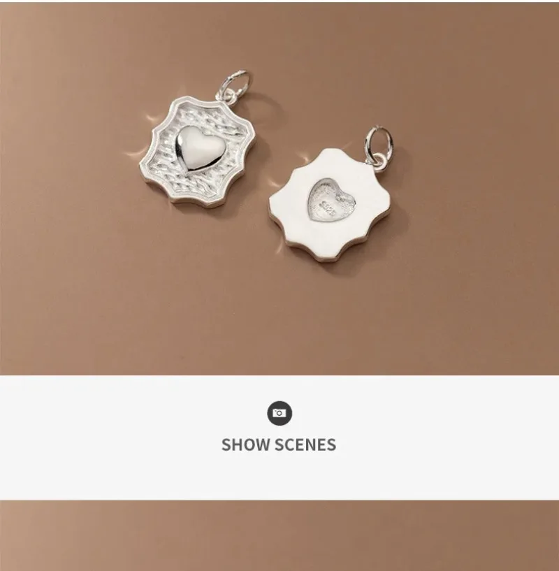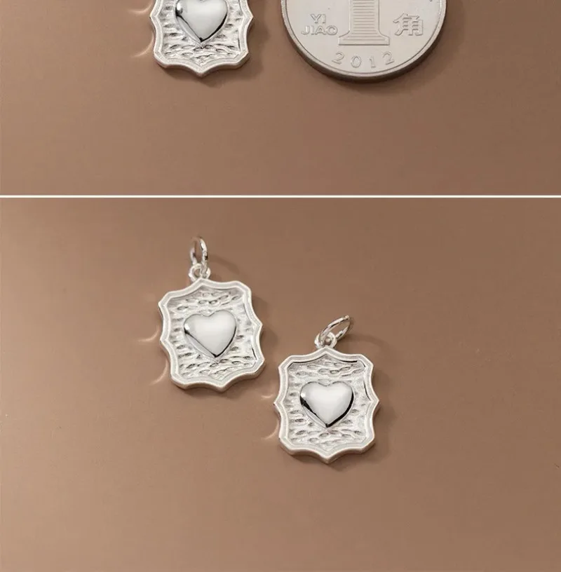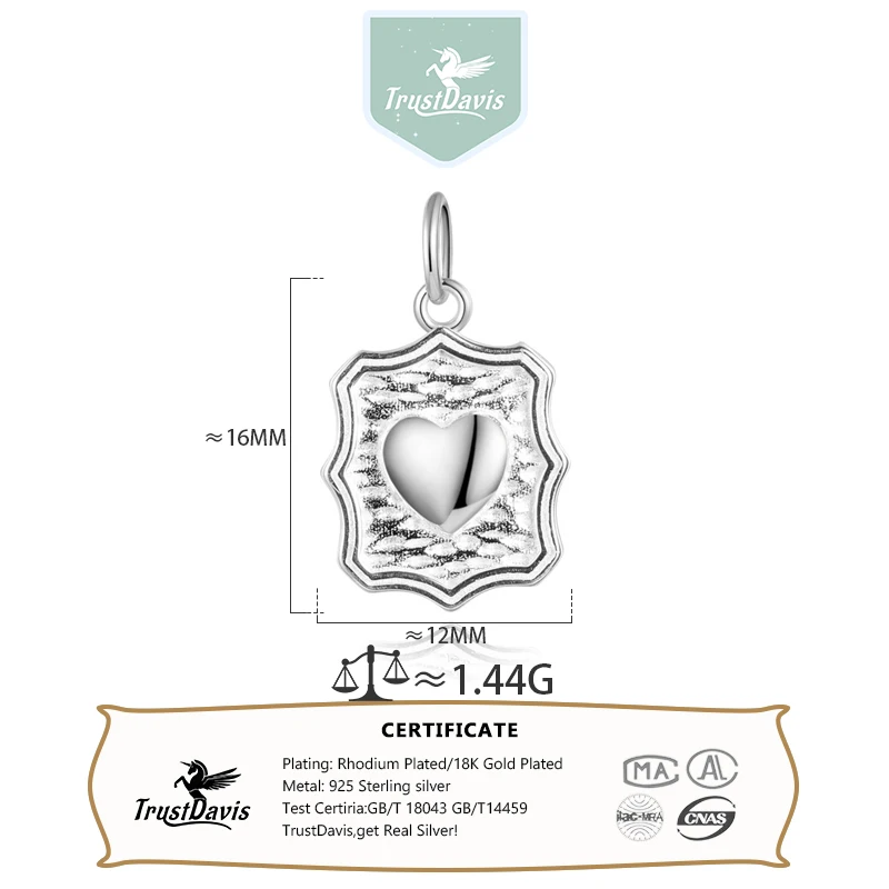 TrustDavis Real 925 Sterling Silver Vintage Wave Heart Charm Pendant for Women Kids Handmade DIY Accessories Jewelry DZ1006