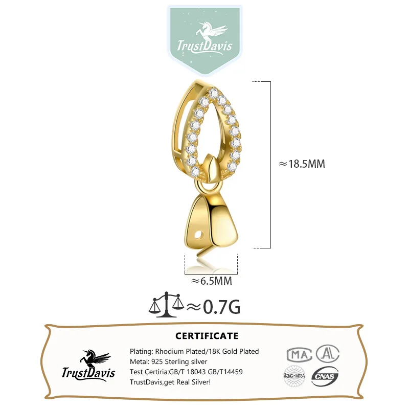 TrustDavis Real 925 Sterling Silver Water Drop Zircon Jade Clip DIY Jewelry Accessories K-gold Plated Pendant Buckle DH0047
