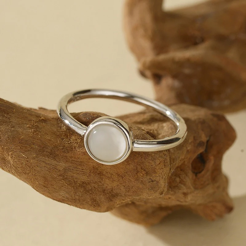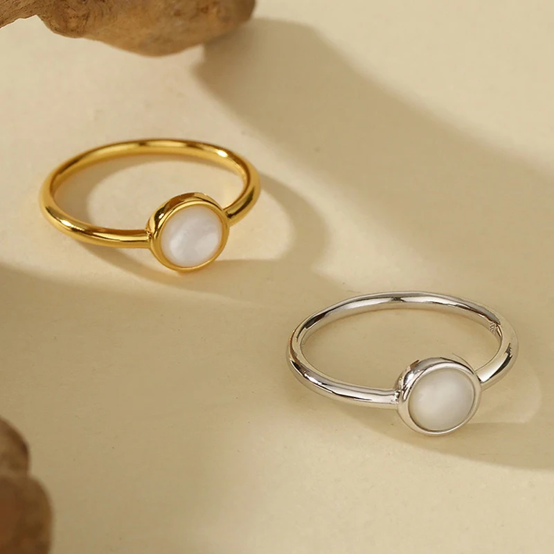 TrustDavis Real 925 Sterling Silver Women's Fashion and Simple White Shell Ring for Women Girls Fine Jewelry Gift DS4681