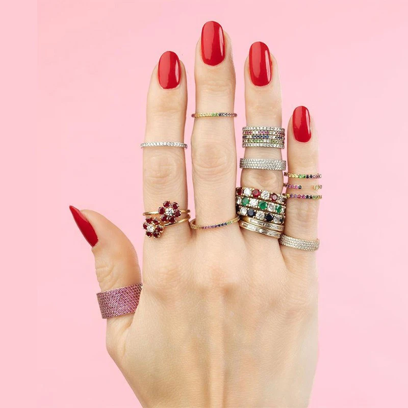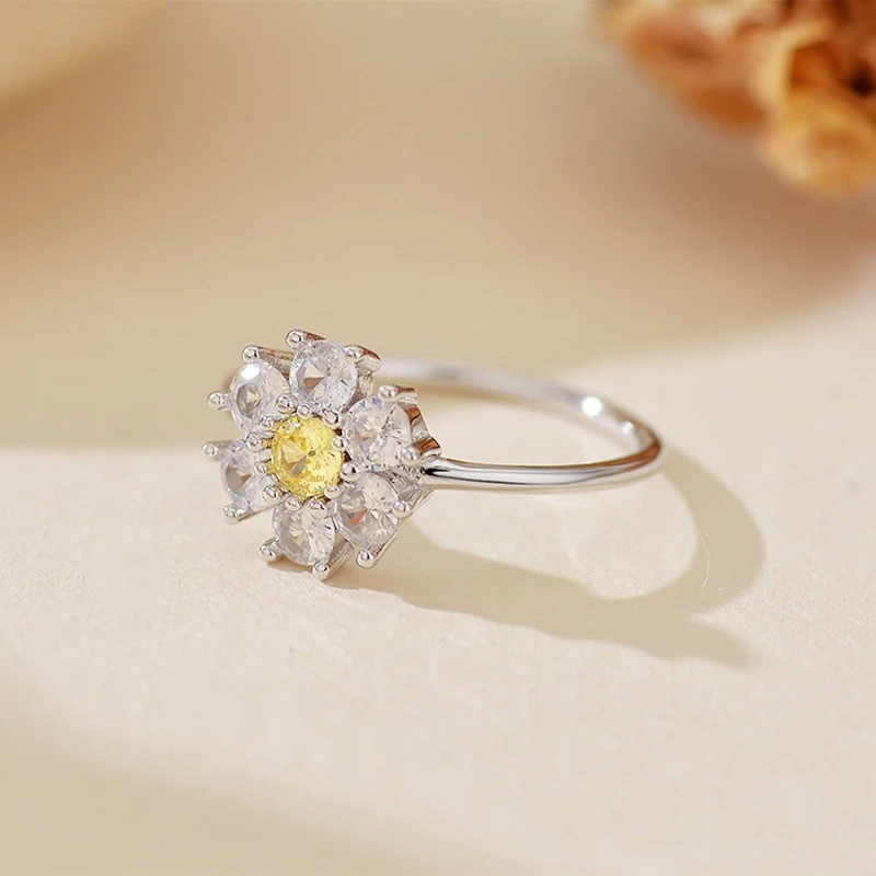 TrustDavis Real 925 Sterling Silver Women's Fashion Two-tone Flower Colored Zircon Ring for Women Girls Fine Jewelry Gift DS4708