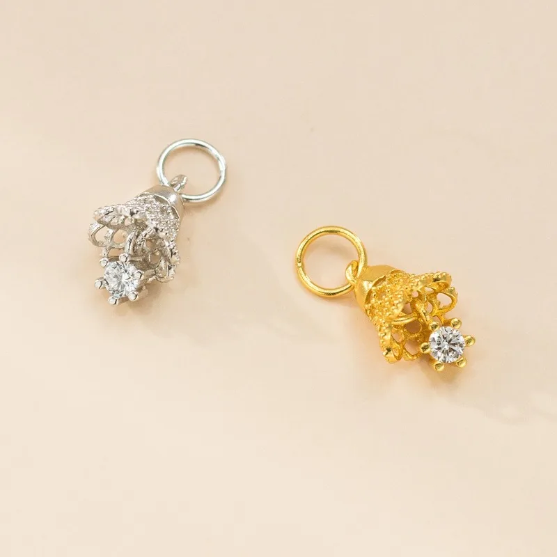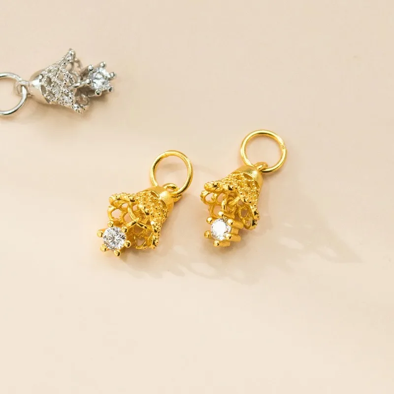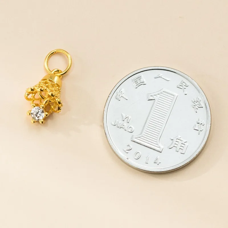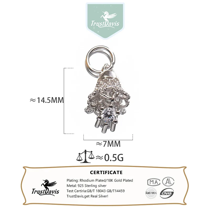 TrustDavis Real 925 Sterling Silver Zircon Small Bell Pendant Handmade DIY Necklace Bracelet Accessories Fine Jewelry DZ1801