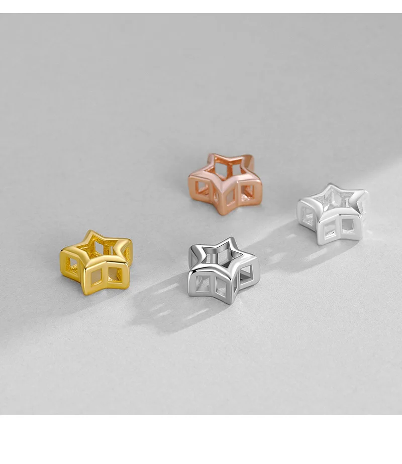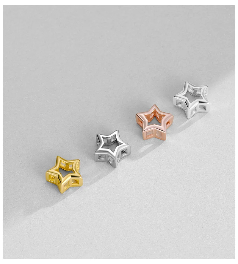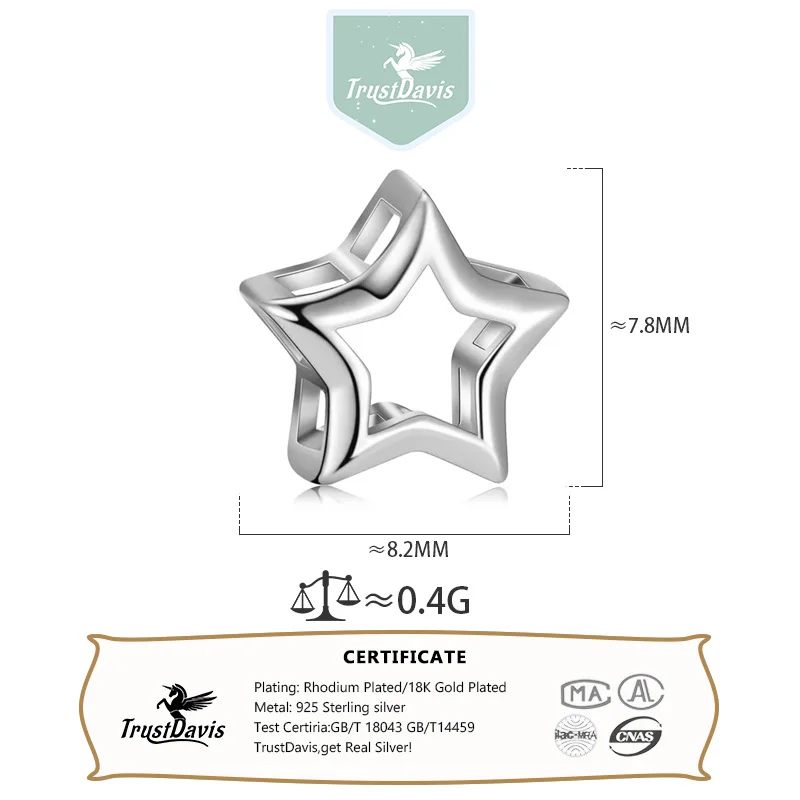 TrustDavis Real 999 Sterling Silver Cute Star Beads DIY Fit Bracelet Necklace Accessories Women Children Jewelry DH0010